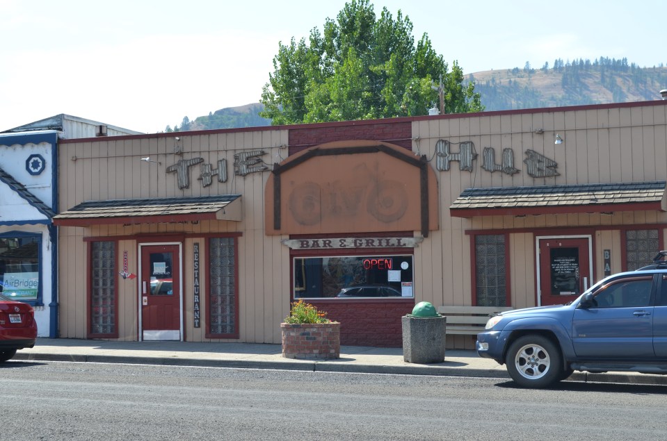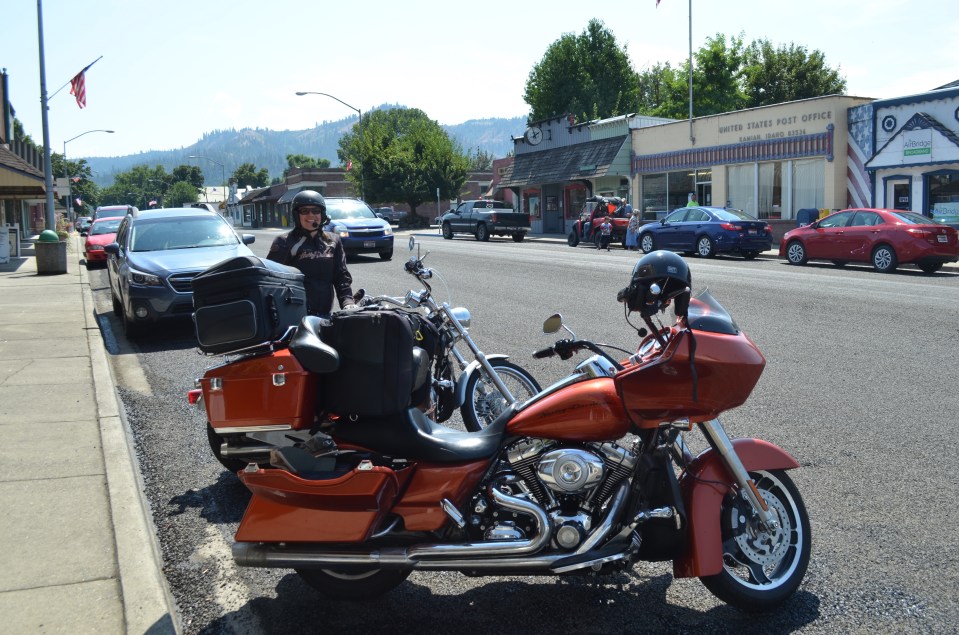 We soon made it to Kooskia where the terrain started to change and the clouds started to look menacing. Feeling a few drops we headed into town to have a bite to eat for lunch. Seeing a couple bikers outside of The Hub Bar and Grill, we decided to head in. As we ordered our food I went outside to grab a few things off the bike and man I was glad we stopped, it was pouring outside. We both had a burger and beer, the one thing both of us still cannot get past here in the US is the portion size, everything is huge!