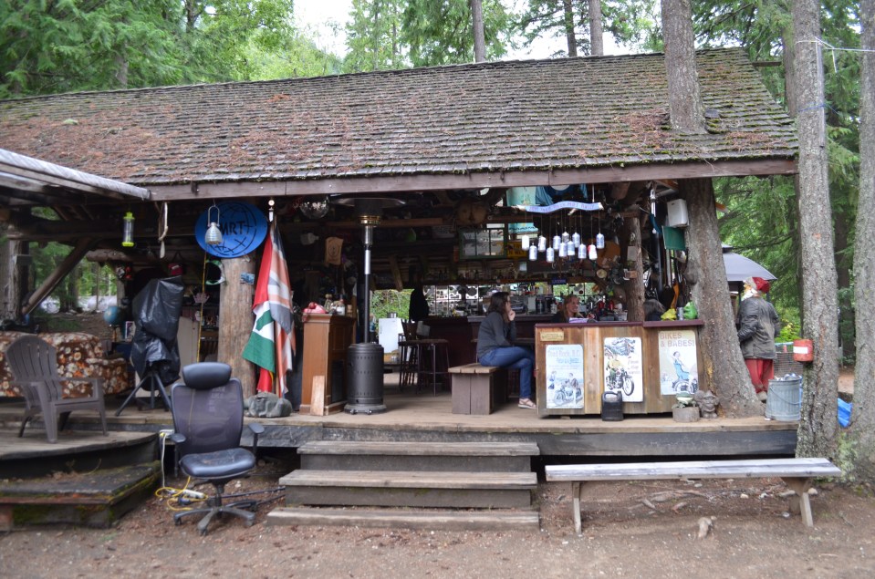 Our destination today was the Toad Rock Motorcycle Campground outside of Balfour on the opposite side of the lake. Due to the location we decide to pick up some beer at one of the BC beer stores in Creston. Walking into the beer store wearing our clown shoe rain covers we quickly figured out what we wanted and left. It’s amazing the difference in selection between BC stores and Alberta. They really need to remove the BS laws and allow more product from other provinces.
