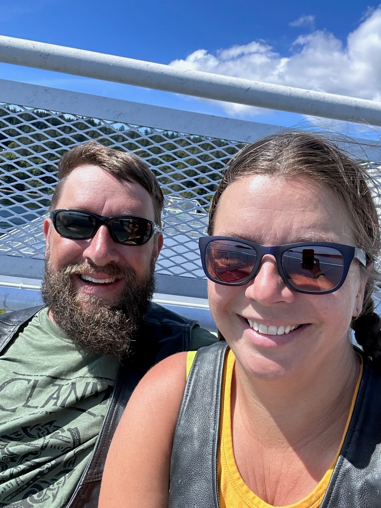 The ferry loaded pretty quickly and they placed us at the back of the top car deck. One of the things I learned on this trip is to utilize the AC on the ferries to charge our solar generator at any chance we got so we brought it up with us and gave it a quick charge to 99% before I brought it back to the bike.
