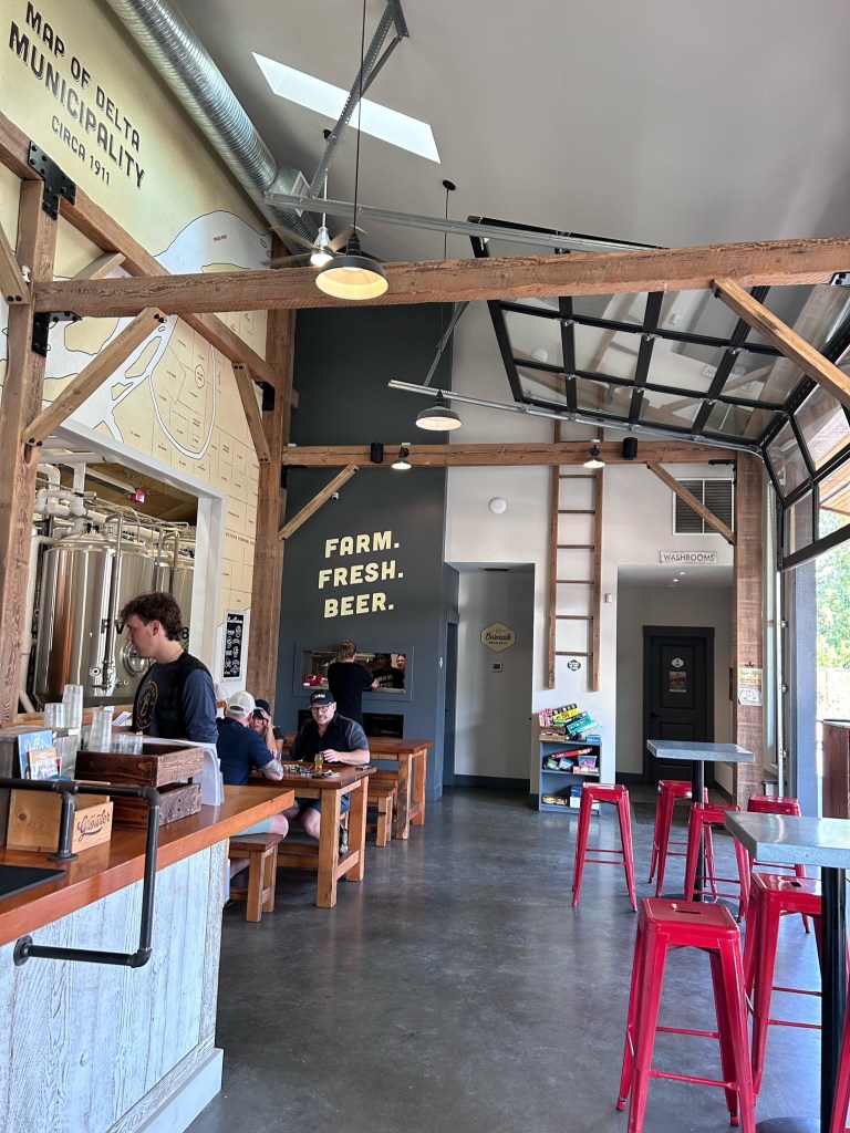 Once we landed on the mainland it was decided that we needed to hit a new brewery and decided on Barnside brewing in Delta. I plugged this into my GPS before we departed and headed on our way. Well I discovered that my GPS really needs an update as it was missing a lot of the new highways that BC has built outside of the ferry terminal and because of this we kinda overshot the turn to the brewery. We did eventually find it and settled in for a flight of beer.