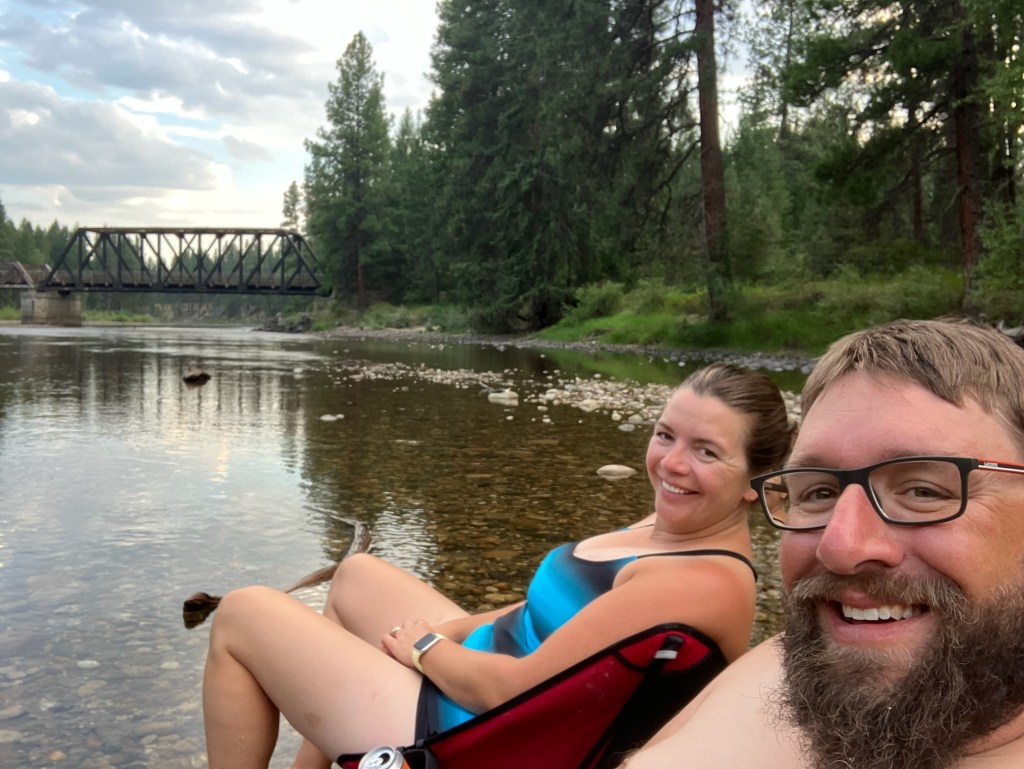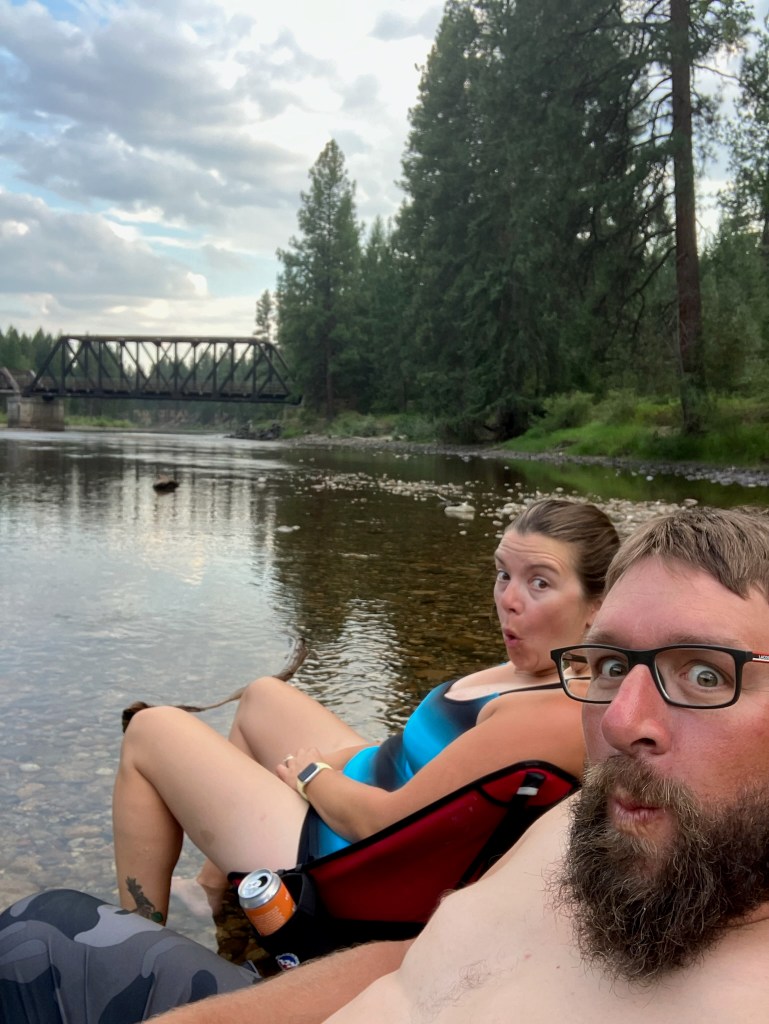 One of the main draws of this site is the Kettle river and the old Kettle valley rail bridge that you can jump off of. As I’m still nursing my back due to an injury in March, I decided to forgo jumping off a bridge and just sit in the river on a camp chair drinking beer.
