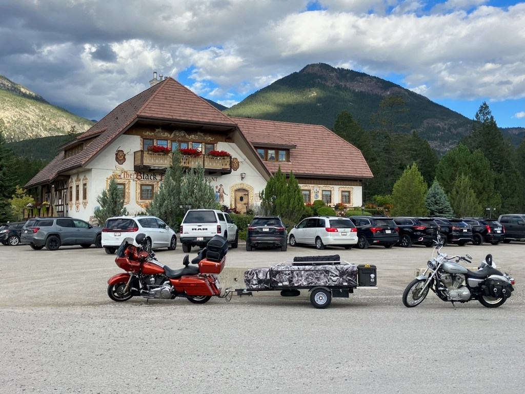 This was the first real test for me pulling the trailer as the pass in Manning park has some great corners that can sneak up on you. As this is my first year pulling a trailer I took my time on every corner making sure I was not exceeding my skill set. This is hard for me sometimes as I really really like the corners in BC and tend to scrape the floorboards. We made good time and got into Princeton pretty quickly and stopped at the Brown Bridge pub for a bite to eat. I have to say the guy that served us had the biggest case of I don’t give a fuck ever.