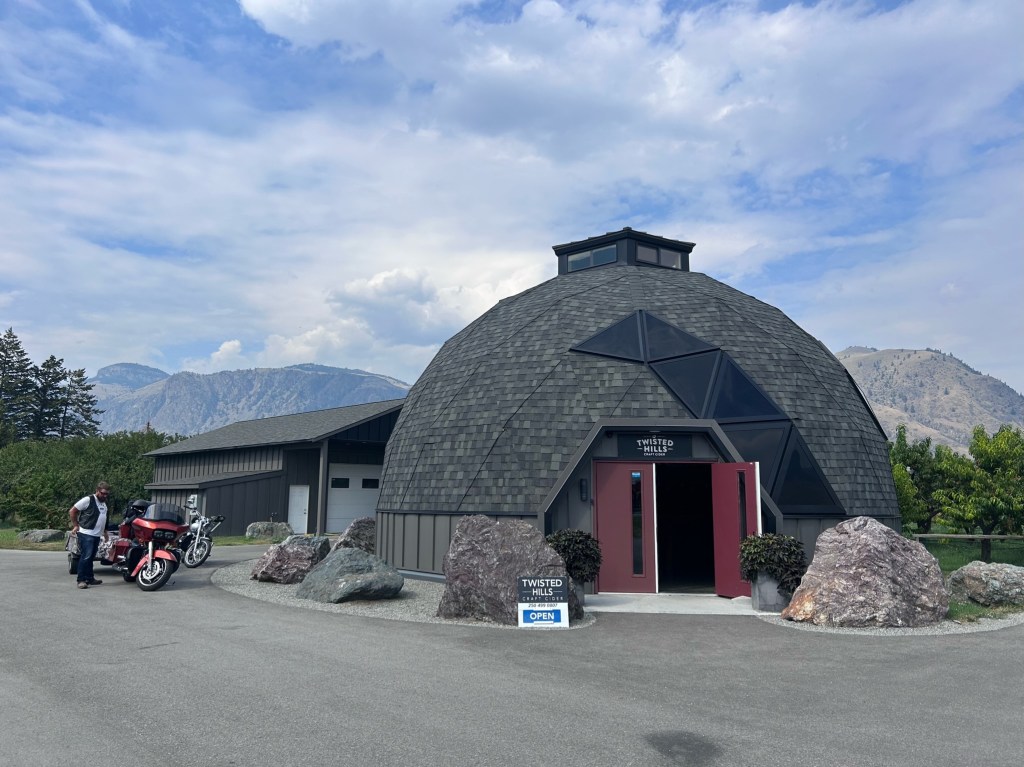 We left the pub and continued on highway 3 making our way to our planned destination of Kettle creek campground outside of Rock Creek. On our way we happened to stumble onto a great Cidery right outside Cawston that used all estate grown apples. They had an amazing looking building.