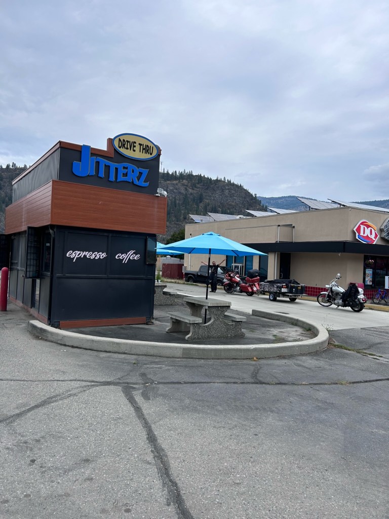 We rode through to Grand Forks and stopped off at a local coffee shop that reminded me of the ones that we would encounter in the USA, Jitters coffee served us a great latte and we were able to utilize the washroom next door at DQ.