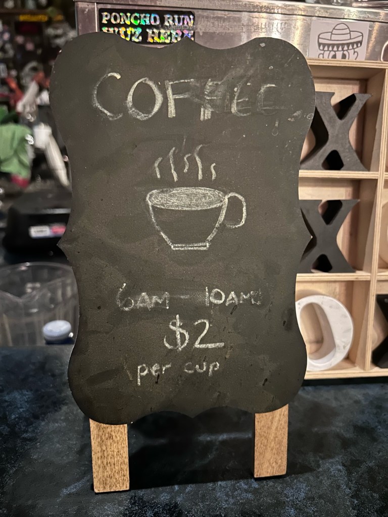 The morning started with a couple of coffees and the last of the oatmeal. After feeling well caffeinated we packed up and headed down the road.