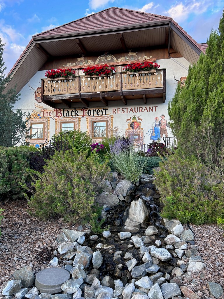 As it was getting late Leah and I decide to eat first before heading to the campground that we were suggested to go to and anyone in Invermere that wants authentic Bavarian food knows to go to the Black Forest right on the highway. I was really happy when they were able to seat us immediately and we both ordered the special which included a wonderful salad, schnitzel with hunter sauce and a fresh baked brownie.