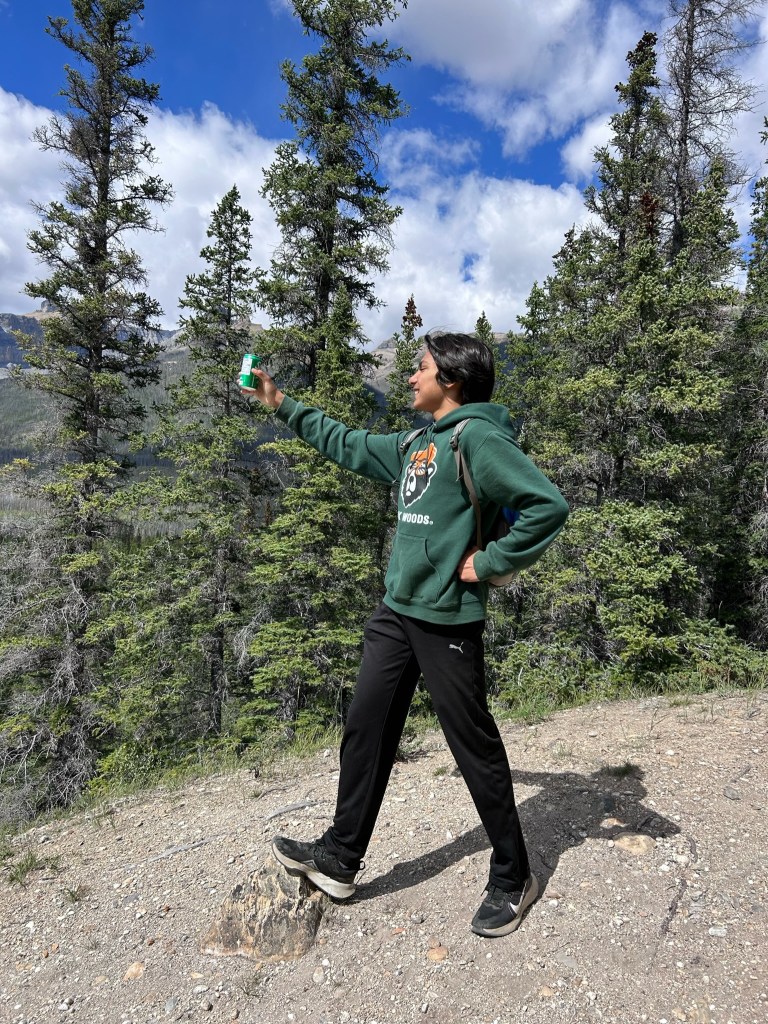 Once back at camp we wanted to go for a brief hike, as I’m still nursing my injury we opted for one right at the campground. It was a pretty good climb and as Ranak was the only one with a backpack we had him mule some beer up for us. The kid even had a great idea for some pictures.