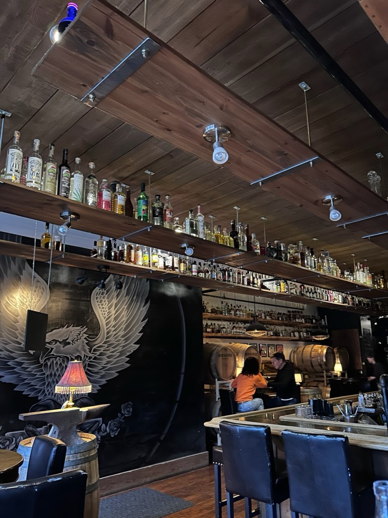 After the museum we went over to Monashee Distilling for a cocktail. At first we were expecting to see a few vodkas, gins and maybe a local whiskey (all of which they had) but then were dumbfounded by the sheer number of spirts they had contained in the overhead racks. Apparently this place has the highest number of bottles outside of Toronto with 1300+. We both tried some of their local products with Leah having a gin cocktail and I had to try their whisky.