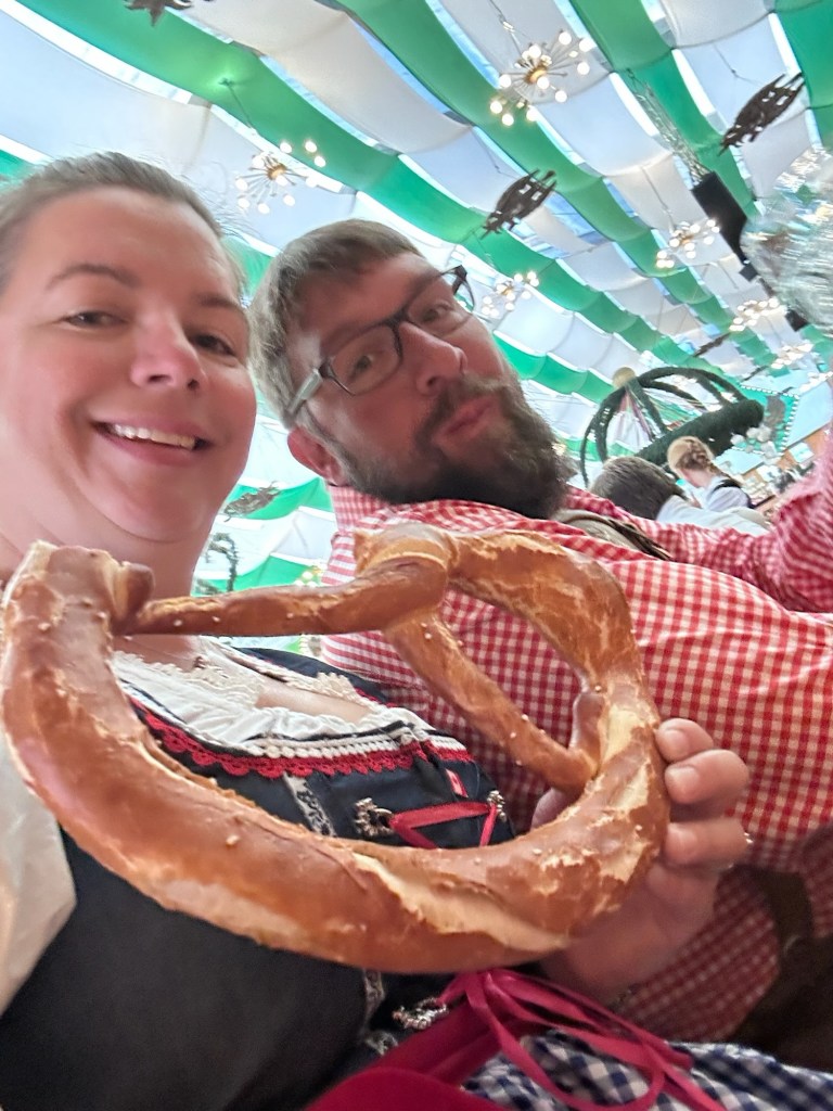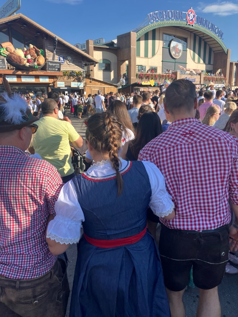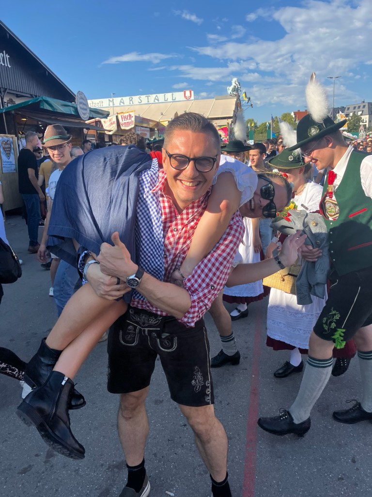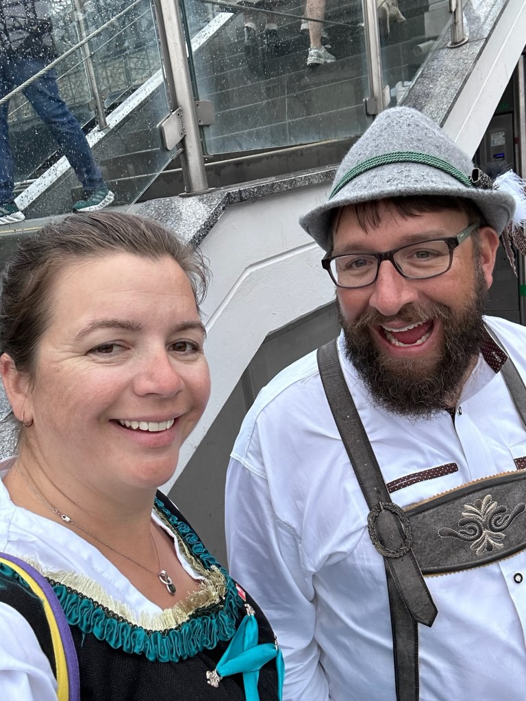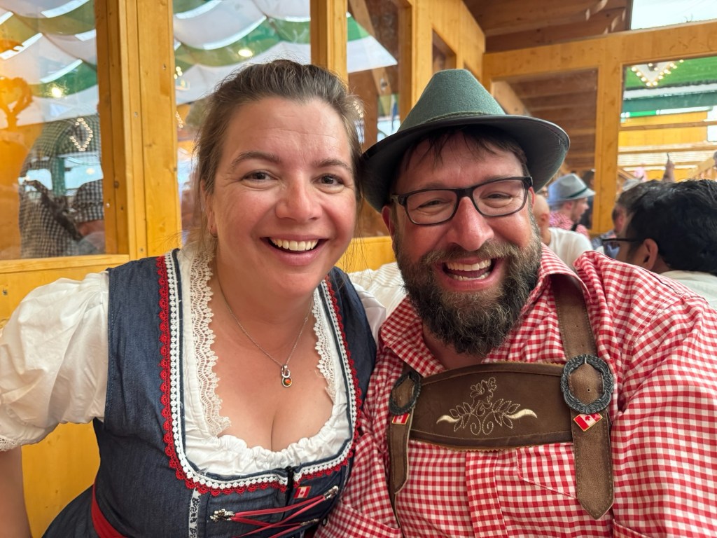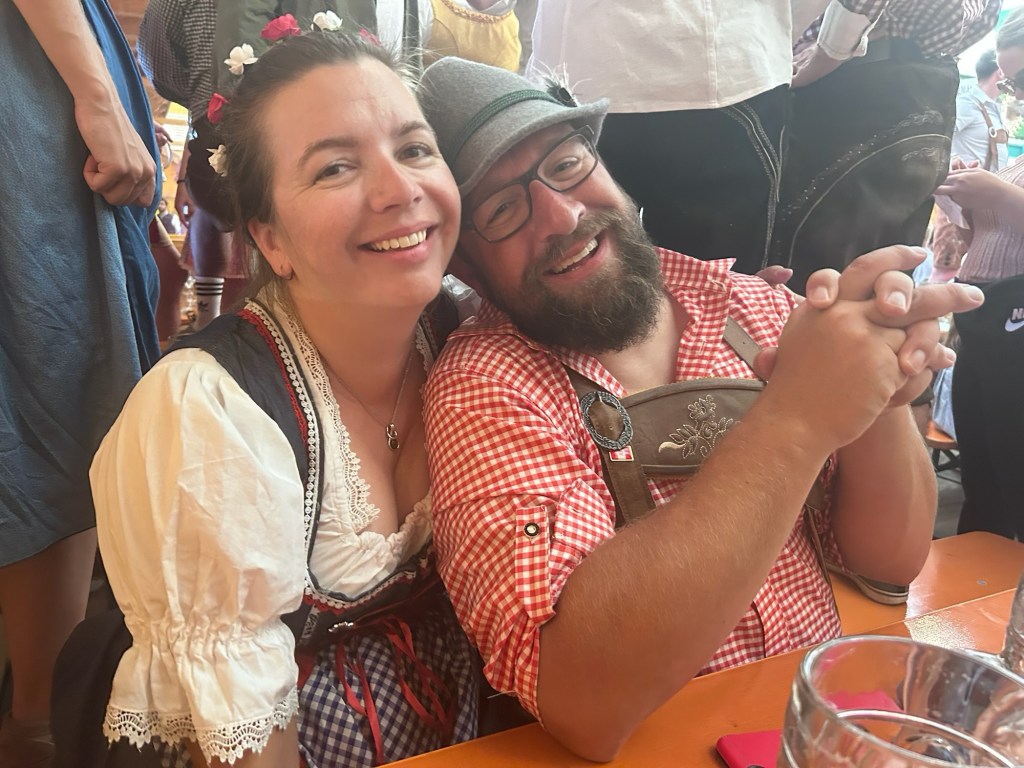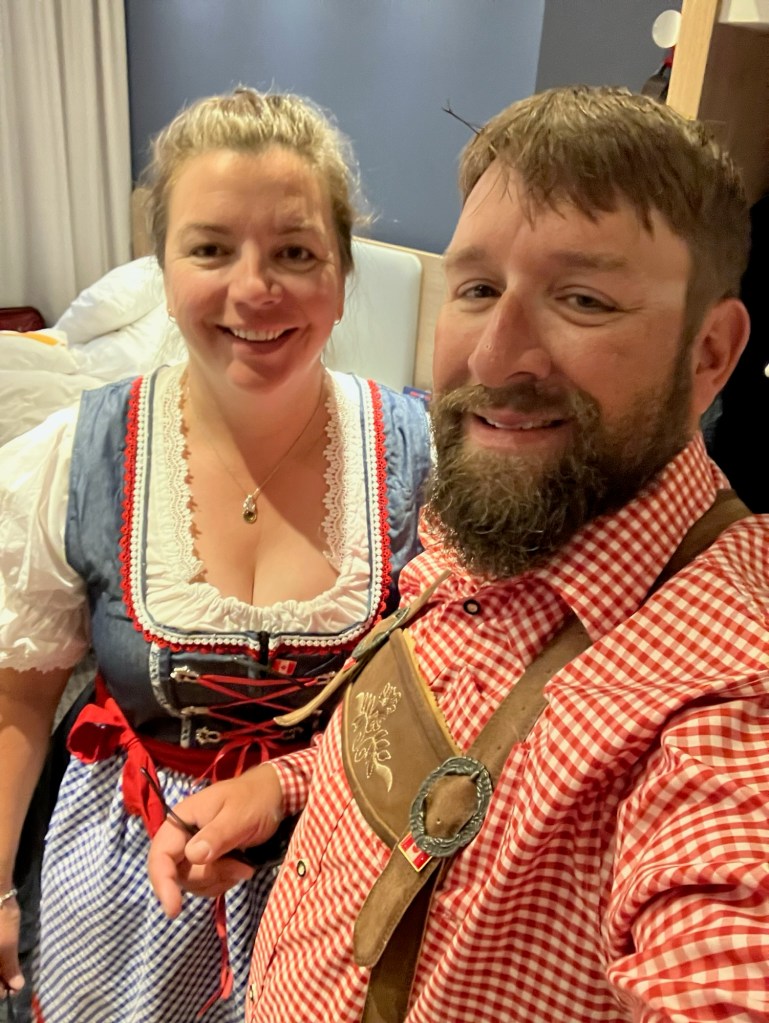 The plan for today was to hit the festival and experience what Oktoberfest is all about. Leah got dressed in her dirndl and I decided to go with the Lederhosen today as we were expecting temperatures around 28. I have to say that Leah looks like a fucking delight in her dirndl.