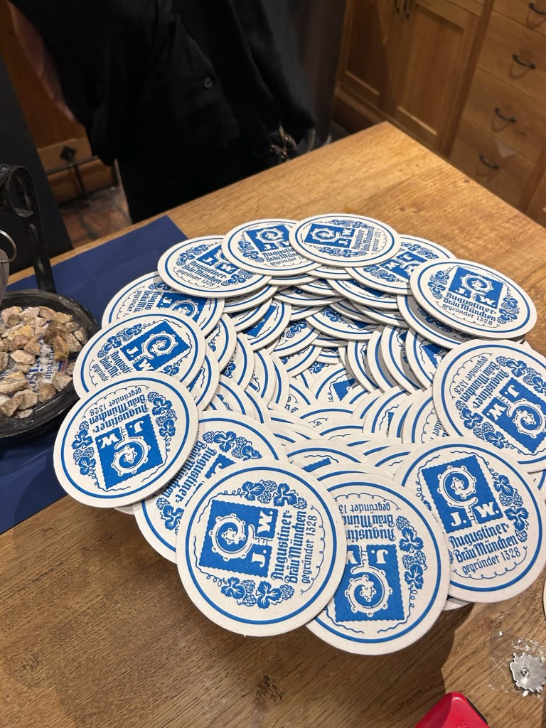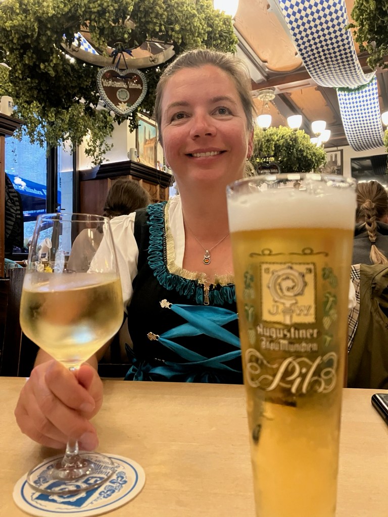After the parade we heading to the Marienplatz and walked to the Hofbrauhaus for food and drink. Finding a table in the central outdoor patio we ordered our first MaB (1 litre stein) and some wonderful food. The first couple that sat down with us from the US just outside of Seattle (they also don’t care for the orange gremlin) that were just wonderful to talk to. The atmosphere at the Hofbrauhaus was amazing with groups competing while singing on what seemed who could be the loudest.