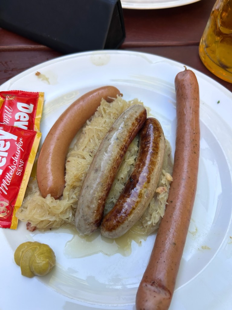 Leah and I decided that that was also our cue to walk the grounds and maybe buy some souvenirs then head back to the Marienplatz to find a good Bavarian restaurant, it did not take us long until we found the Augustiner Klosterwirt where we ordered a plater for two with pork knuckle, crispy pork shoulder, schnitzel, sausages, cabbage, warm potato salad and potato dumplings.