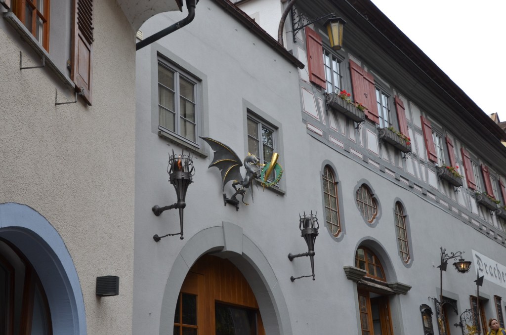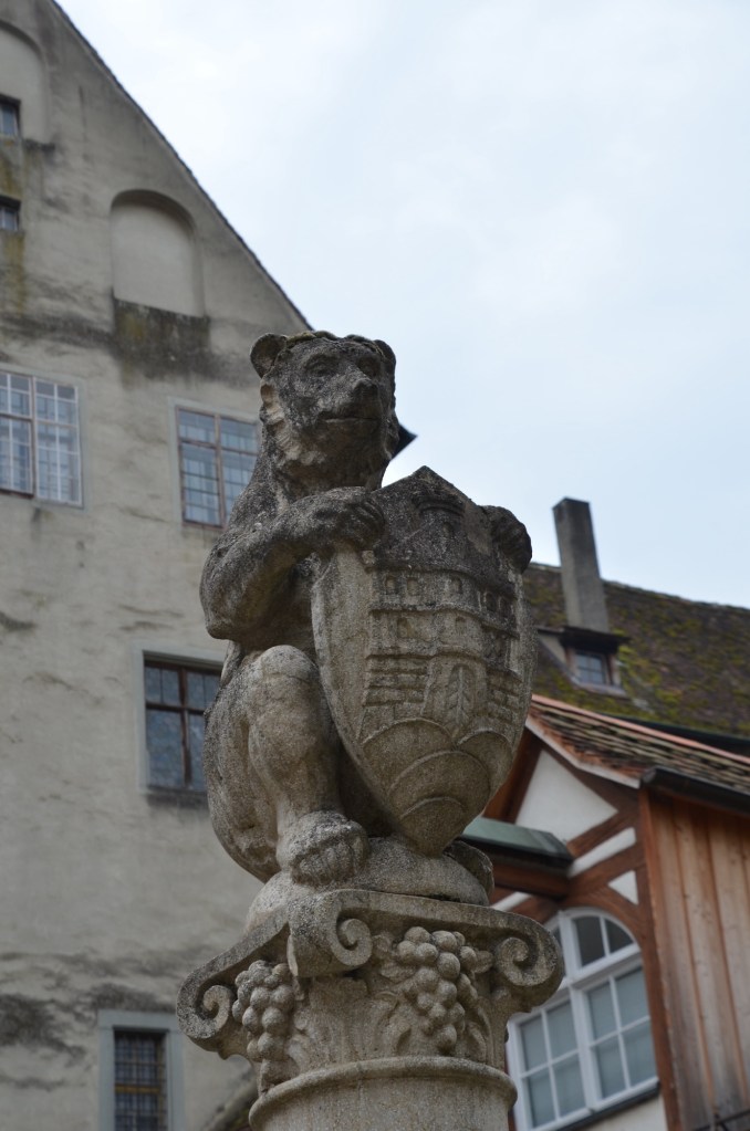 Part of the room fee included a Muesli breakfast and coffee in the shared space on the main floor. We didn’t run into Mr Grumpypants, so had a good start to the day. Our first stop was in Fredrichschafener which has a very large lake. The lake, Obersee Bodensee has Germany, Austria, and Switzerland along its shores. We made a historical landmark our destination, Schlossstag and walked along the path that edges a castle. We wandered up to the castle: Schloss Fredrichshafen. The just happened to be a winery in on side of the castle (sadly, it was closed) but the winery had a vending machine! For wine! I had to make a purchase, it’s such a novelty to see alcohol that isn’t entirely under lock and key.