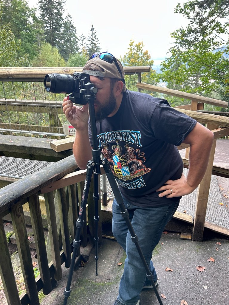 Next stop was Triberger Wasserfälle (waterfall). Keith played around with some photography, I made sure to snap a photo of the photographer. We wandered down the walkway beside the falls and noticed a sign for a cafe in town. We stopped for a quick espresso and then did the 900m elevation gain back up to where we had parked the car. Did I mention that we had to pay for parking at the waterfall, and pay to enter the trail to the waterfall? Seems like all the parking fees are to try to encourage people to use the train system instead, but there are also times where in a remote location like this, it’s just a cash grab. We paid though, no need for tickets while we are visiting!