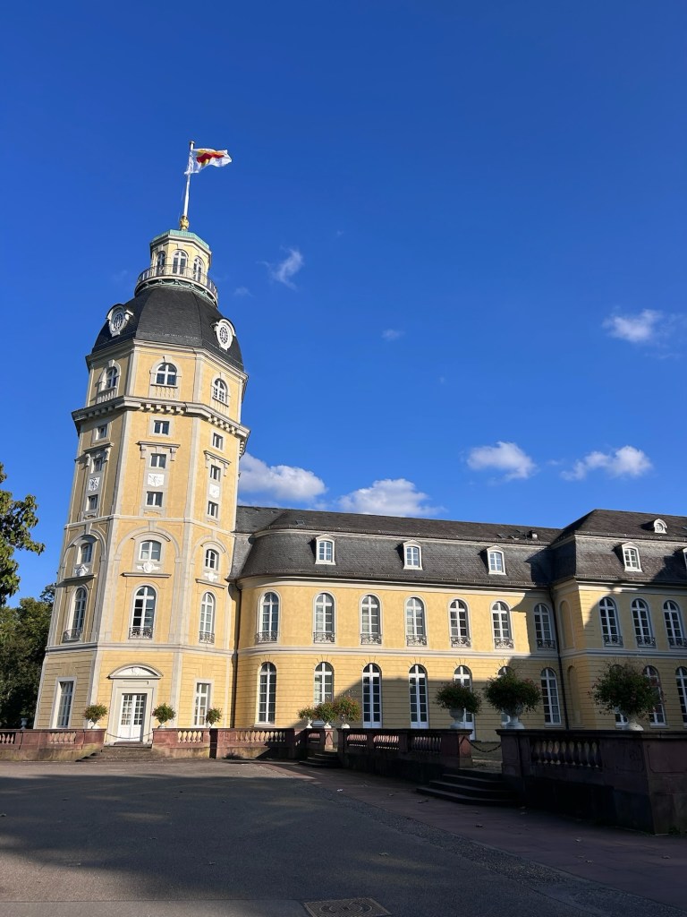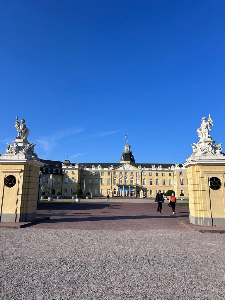 We had a quick refreshment in the biergarten and a couple slices of cake for breakfast (seems to be standard around here) then set out for Karlshöhe to meet Juilian. Juilian was a great tour guide, and showed us around the city. Its design was done by the free masons after the city was bombed in WWII. The streets all fan out from the starting point of Karlsruhe Palace.